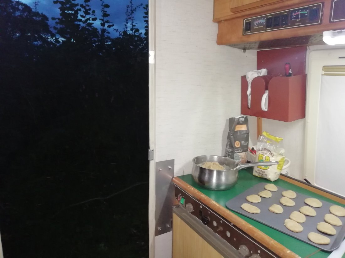(Roadside evening biscuit making trying out the old oven).