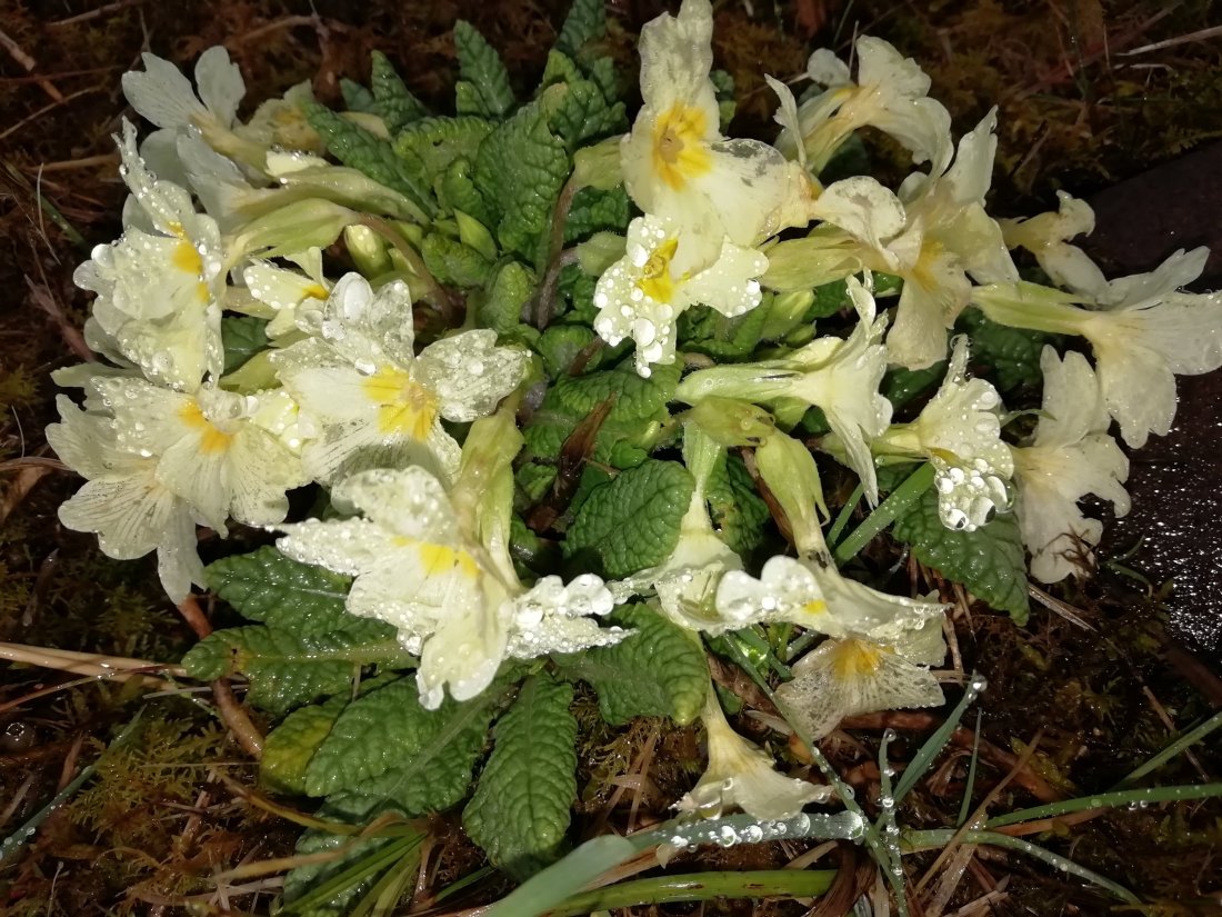Primrose in light rain fall