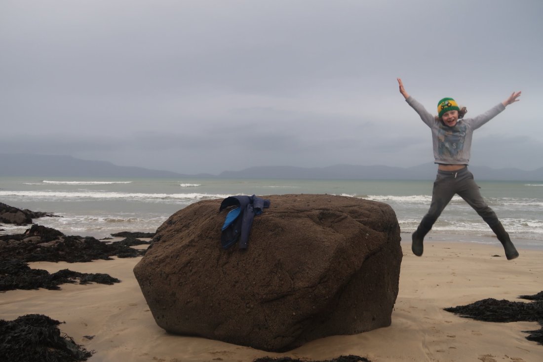 So my hubby has a few days off over Christmas period. We are very thankful and delighted, for that after 24 years off no days off over the Christmas period apart from Christmas day.It’s still sinking in that we truly get time together 😊.So the past few days have been yucky rainy weather quite the norm really how ever does nt seem to much of a break from this weather at present.So we decided to brave the weather and go to the beach what ever!Boots, jumpers, rain coats and of course the kite.1hour 20 mins away from where we live to see for the first time.Old head beach co mayo.With St Patrick’s mountain over looking it.It was stunning scenery.The weather was just breezey with a few heavy spots of rain but not to bad.The wind was on and off so the kite only stayed up for a little while but still worth bring it along.The walk and views were fab.A few pictures of our day below.