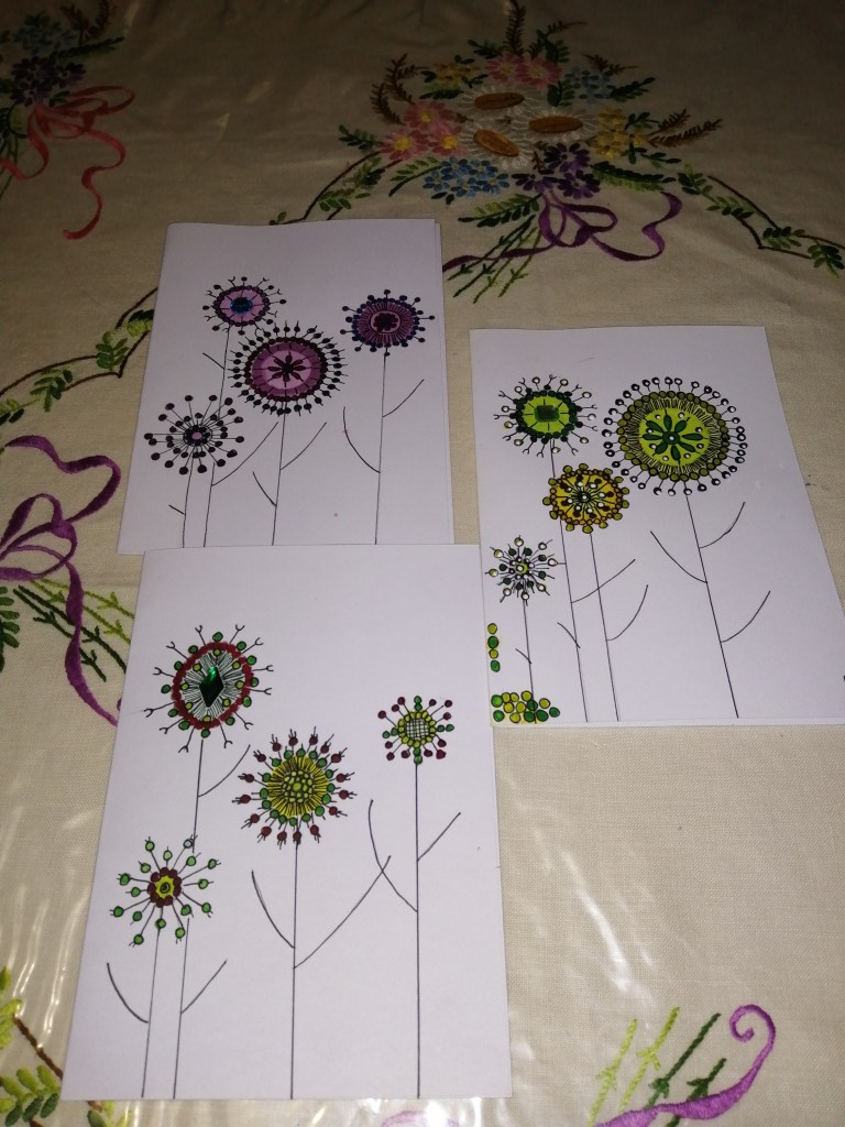 Ive had a bit of time this afternoon to carry on painting water colours and ink drawing of homemade cards.